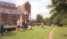 In wet conditions, the muddiest part of the the towpath can be avoided by continuing along Addlestone Road to the roundabout and turning left down Hamm Moor Lane to the end. Cross the railway using the awkwardly-ramped footbridge, continue around Cox's Mill (now desirable residences), and rejoin the towpath over the footbridge at the tail of the lock.