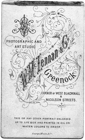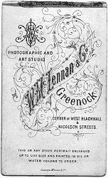The following photographs came from the Wallace Street collection but have not (yet) been positively identified. Some were marked by the author in about 1965 on the advice of his grandfather Dugie McKechnie. The dates of operation of the photographers were supplied by the Greenock Central Library from their records.