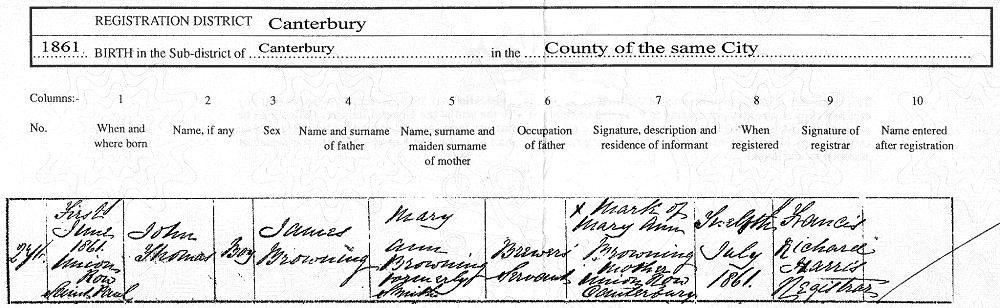 Canterbury in June 1861 [4]. In 1871 he was living at 2 Union Row near to the