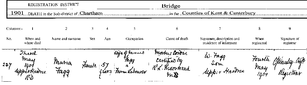 service in Womenswold, where she met and married James Fagg, a