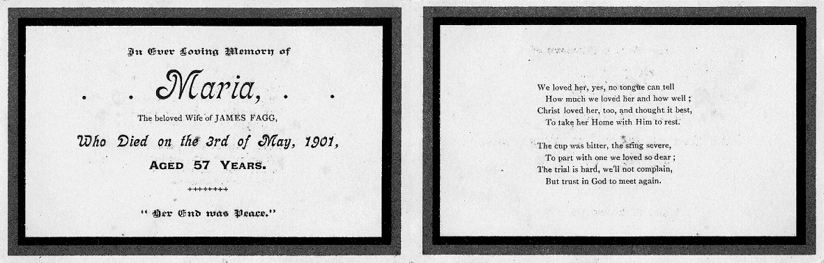 and the cause given as Morbus Cordis[9]. A memorial card was printed, probably for her funeral.