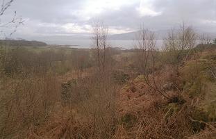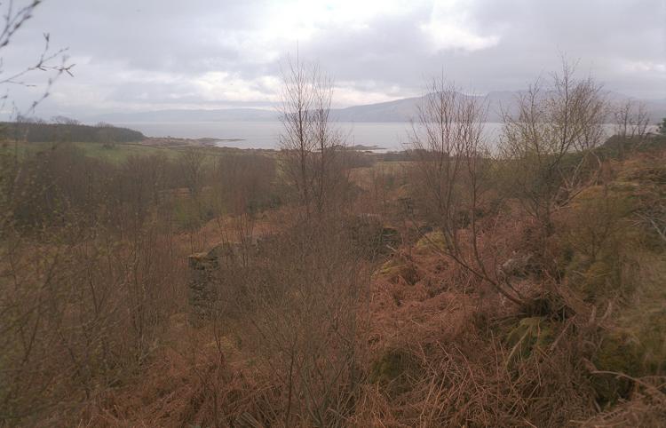 A track runs SSE from Kilmory castle, and where it meets the main road is a hose called Red Lodge. Beside the house is a path leading to a walled graveyard, long since out of use but well maintained.