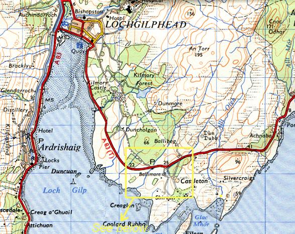 Above: A recent map of Lochgilphead, Argyll showing the location of Castleton and Lingerton. |
