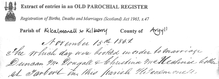 Married | 15.11. | 1851 | to | Duncan McDougall | at | Tarbet | Certificate |