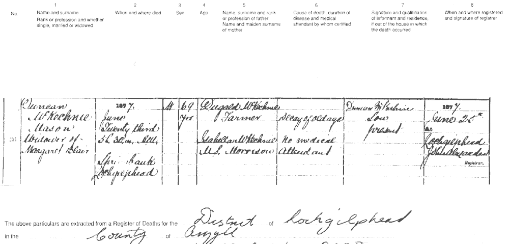 Died | 23.06. | 1877 | at | Springbank, Lochgilphead | Certificate |