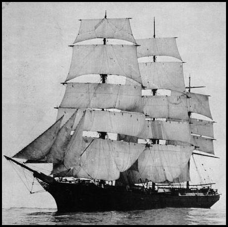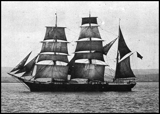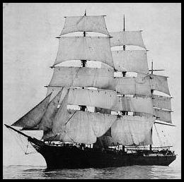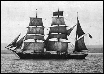 | The barque 'Asta' outbound from the Bristol Channel. 'Ardvar' would have been similar to this in rig and general appearance. |