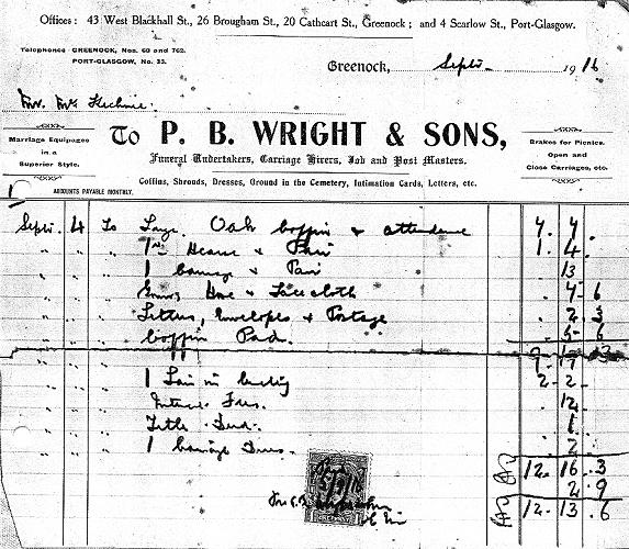 haemmorrhage at 7.55 p.m. on 1st September 1916 [5]. A funeral account from 1916 found among the family