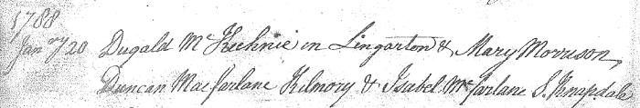 Married | 20.1. | 1788 | to | Dugald McKechnie | at | Glassary, Argyll | Certificate |