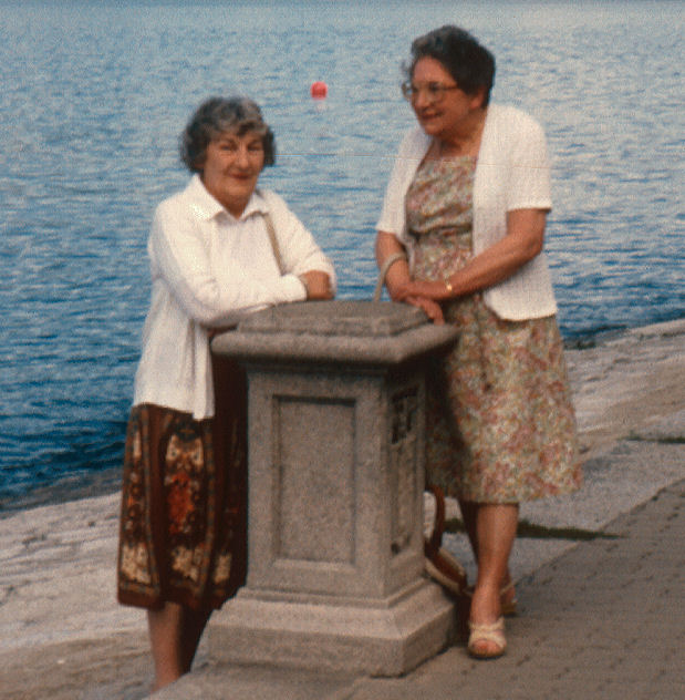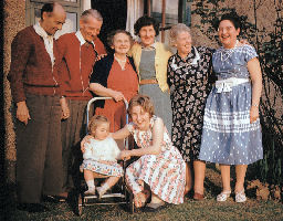 Jo at Little Scots, 1960 | Jo & Vera on holiday, about 1986. | Jo with family at 80th birthday party, 1999. |