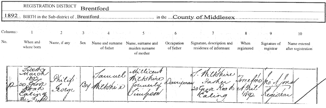 in Ealing in 1892, to Millicent and Samuel Wiltshire. During his